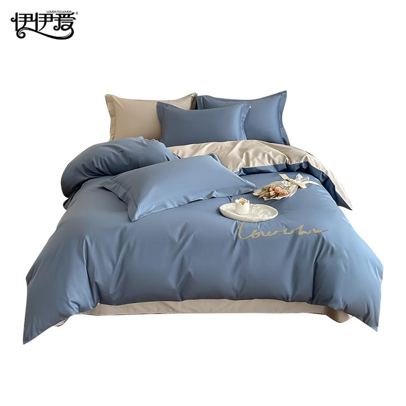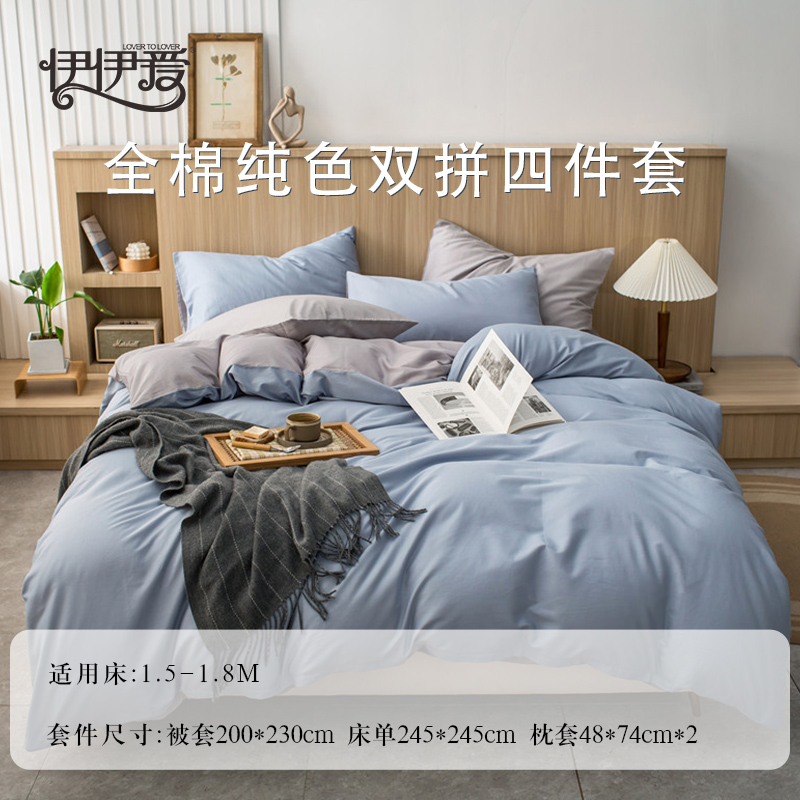 伊伊爱TJ0JD02201639双拼纯棉四件套200*230cm(单位:套)浅蓝+浅灰