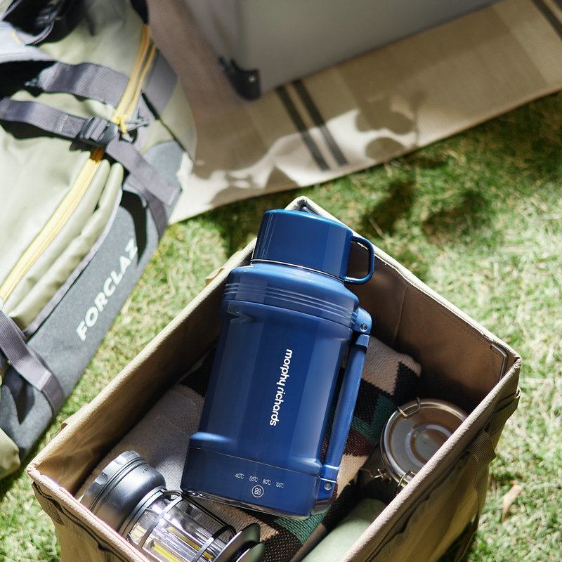 摩飞电器(Morphyrichards)电水壶 便携式烧水壶家用旅行户外大容量电热水壶保温壶 双层不锈钢防烫电热水杯MR6061轻奢蓝 1L(单位:台)