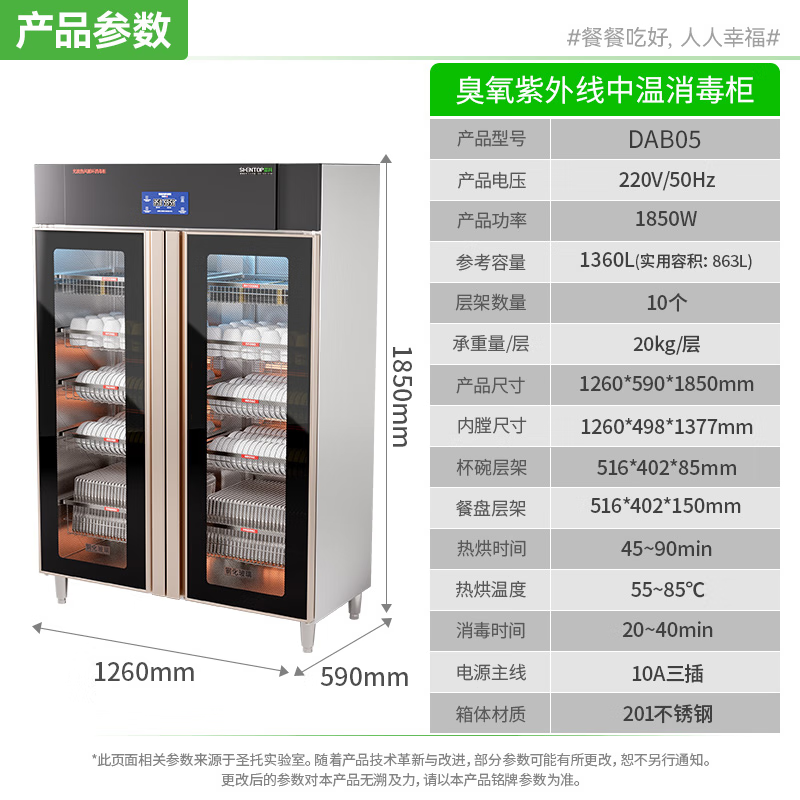 圣托(Shentop)DAB05 商用大容量厨房消毒碗柜臭氧 紫外线|1850W|863L十层消毒柜(单位:台)