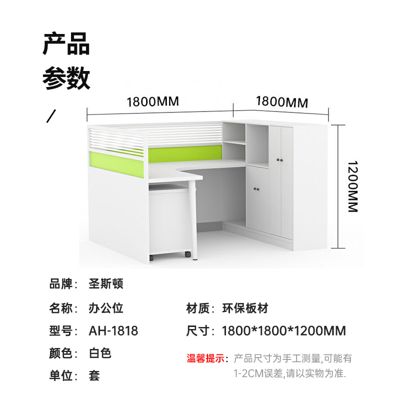 圣斯顿AH-1818办公位屏风卡座1800*1800*1200mm(套)白色