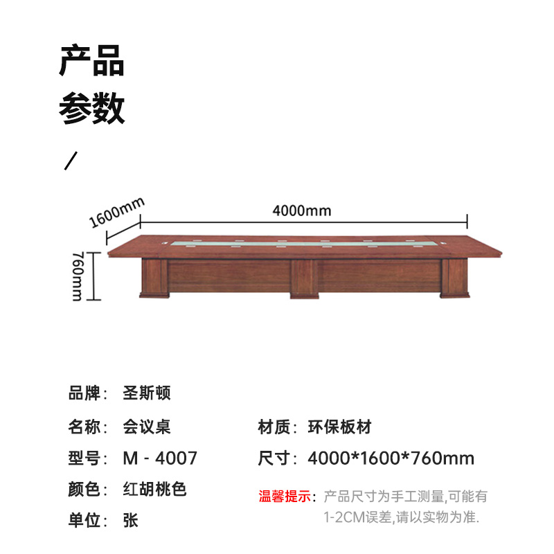 圣斯顿M-4007油漆会议桌4000*1600*760mm(张)红胡桃色