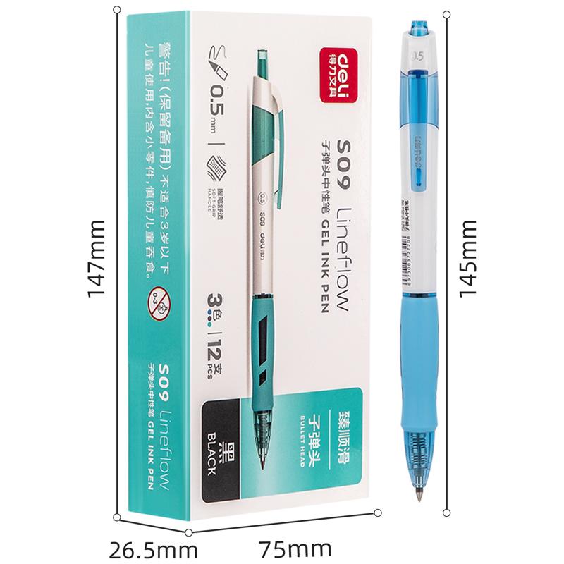 得力S09臻顺滑办公中性笔0.5mm弹簧头(黑色)(支)