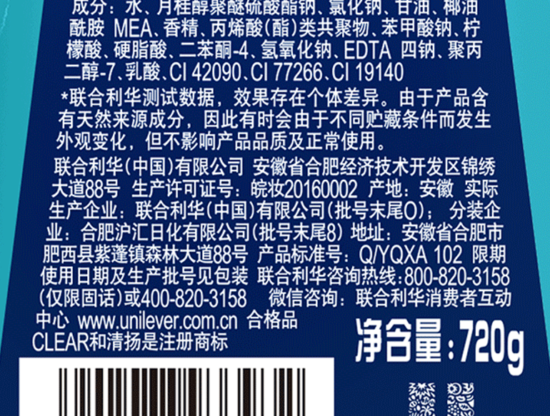 清扬男士系列深海探险古龙香氛沐浴露720G沐浴露(单位:瓶)