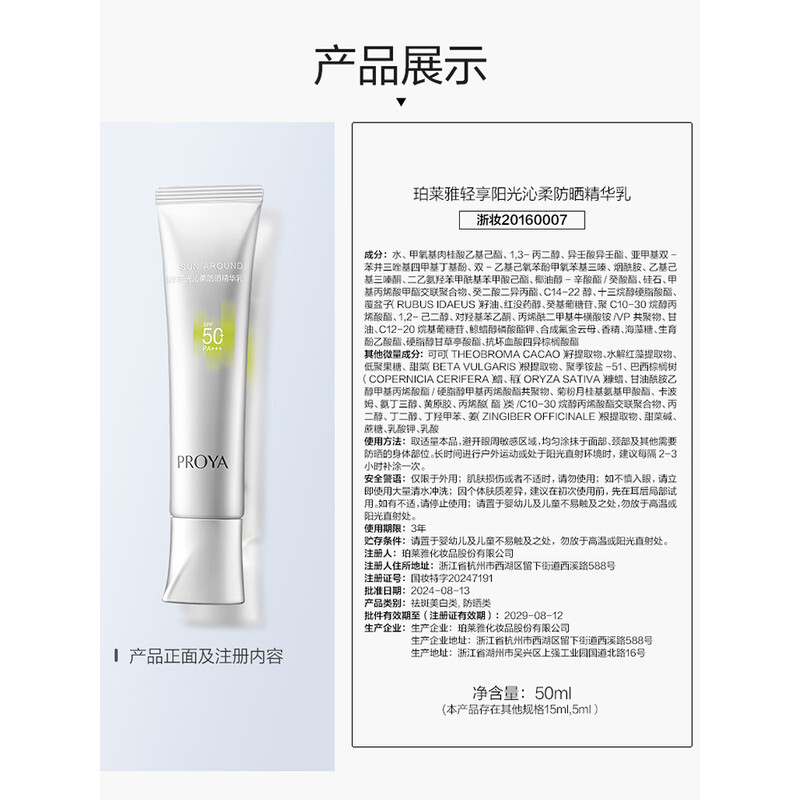 珀莱雅MG轻享阳光沁柔防晒精华乳50ml (单位:支)