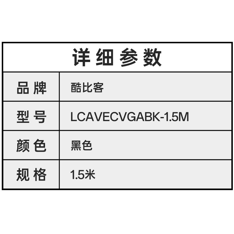 酷比客LCAVECVGABK/VGA视频线1.5M(根)