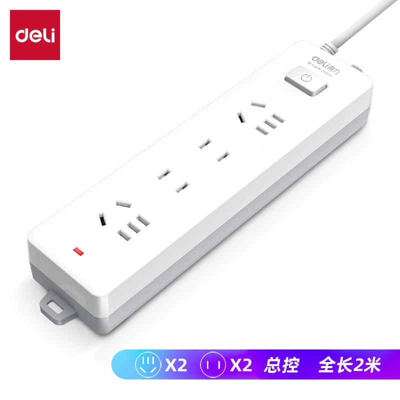 得力18251插座 2+2总控 2米 白色(只)
