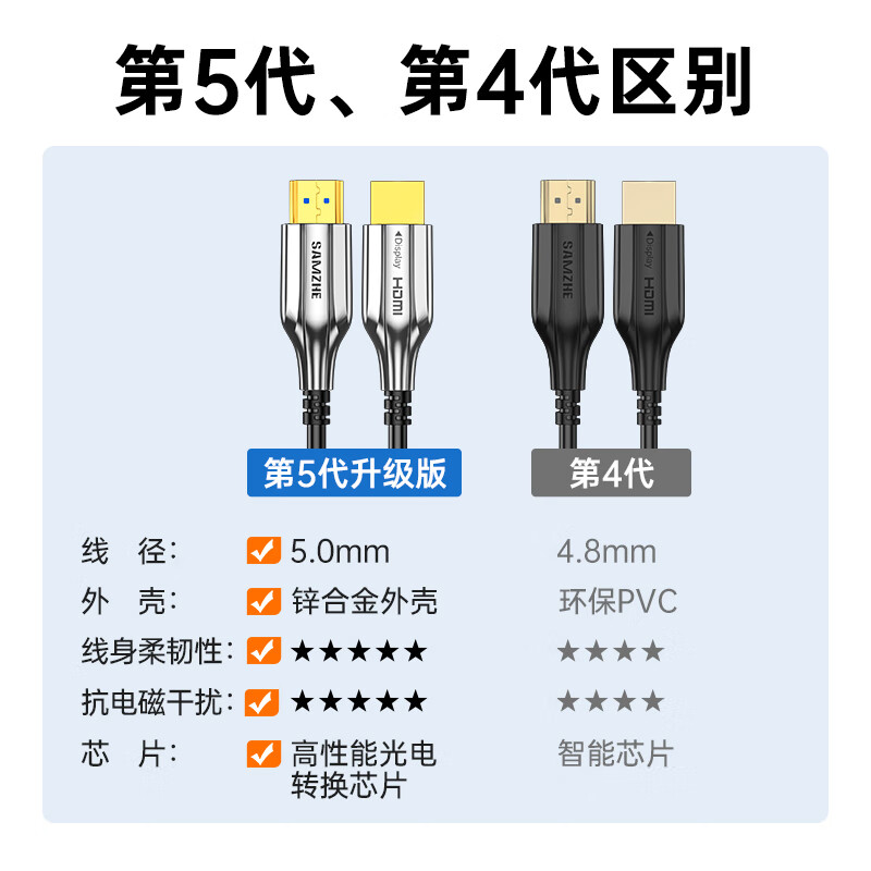 山泽(SAMZHE)光纤HDMI线2.0版 4K60Hz发烧级高清线15米XGH15(单位:根)
