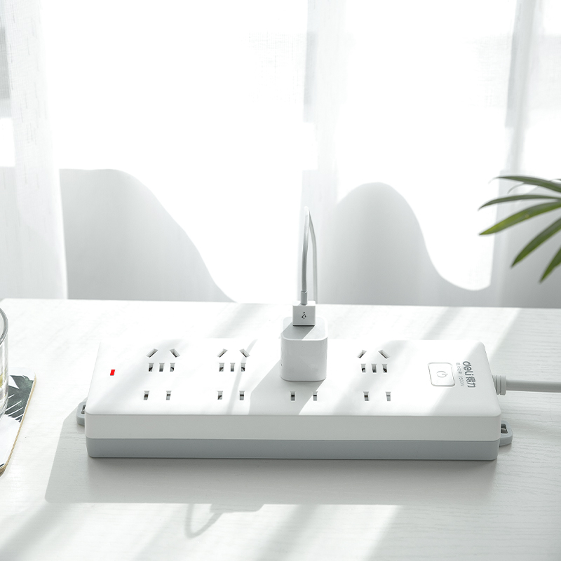 得力18262-10插座 8组总控 10米 白色(只)
