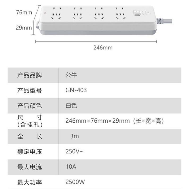 公牛GN-403总控8位插排白色3米(单位:个)(新国标)