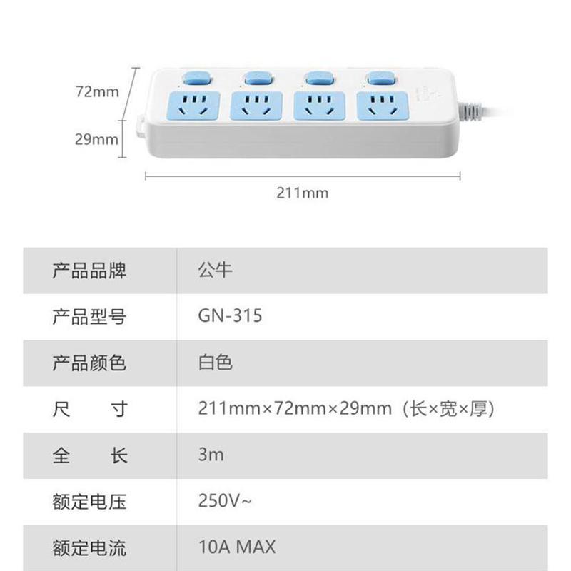 公牛GN-315分控4位插排3米(单位:个)(新国标)