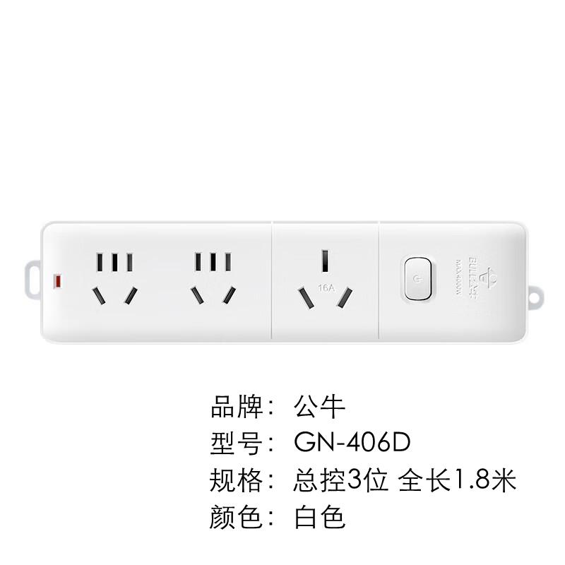 公牛GN-406D总控3位插排白色1.8米(单位:个)(新国标)