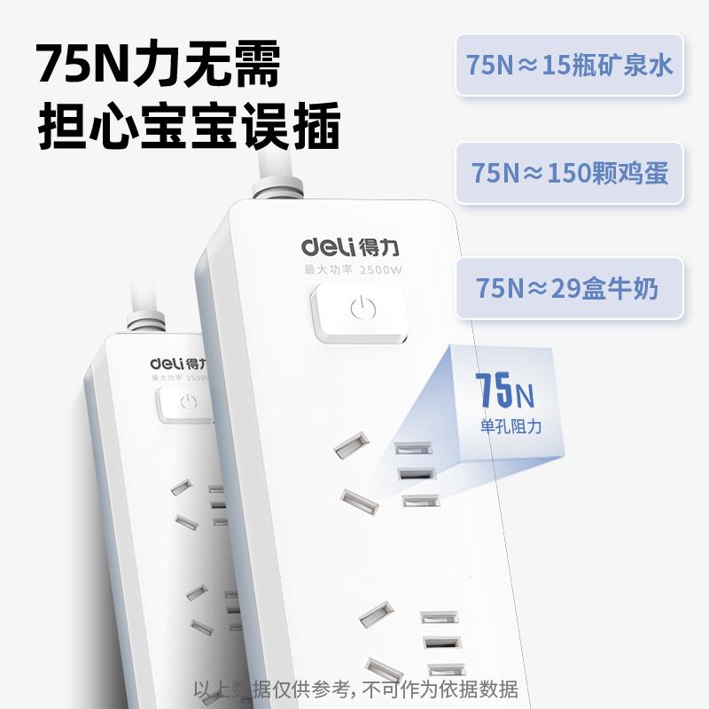 得力18254插座 5组总控 3米 白色(只)