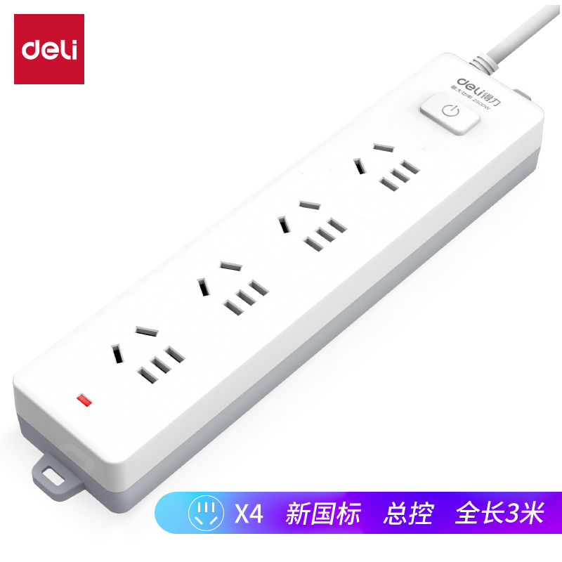 得力18253插座 4组总控 3米 白色(只)