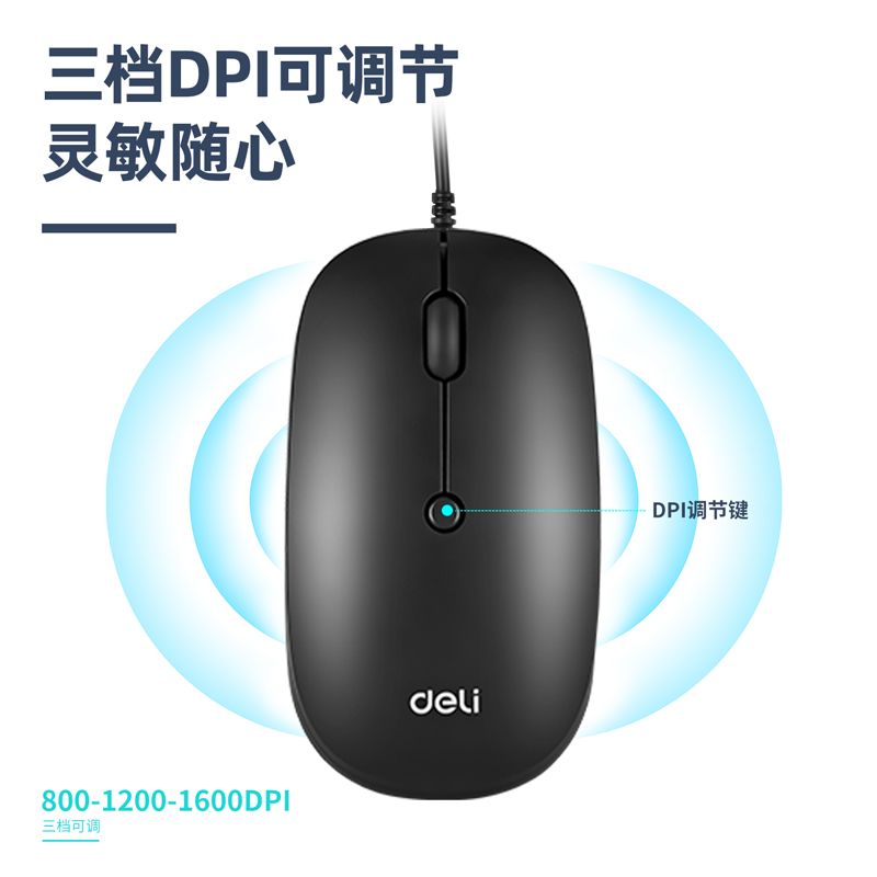 得力LN200-B有线鼠标(黑)(个)