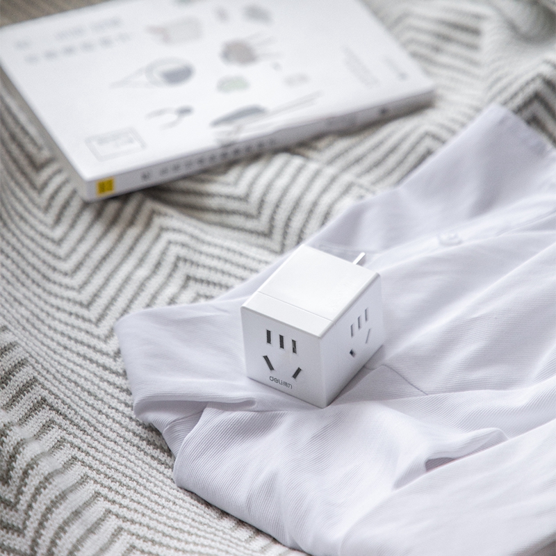 得力33634转换器旅行转换插头 3组 白色(只)