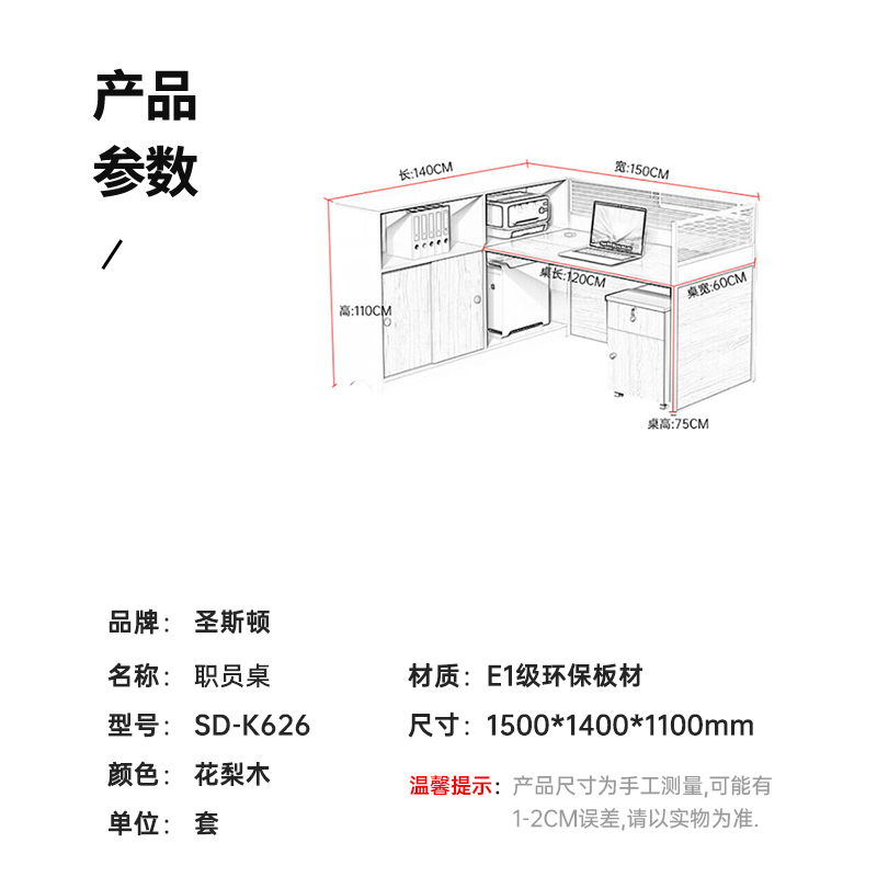 圣斯顿SD-K626职员办公桌单人位含活动柜1500*1400*1100mm(单位:套)花梨木