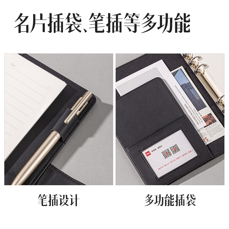 得力办公活页皮面本DP405-25k-210*145mm-100张(黑色)(本)