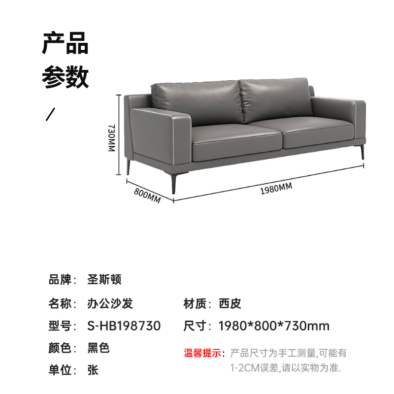 圣斯顿S-HB198730休闲接待办公沙发西皮1980*800*730mm(张)黑色