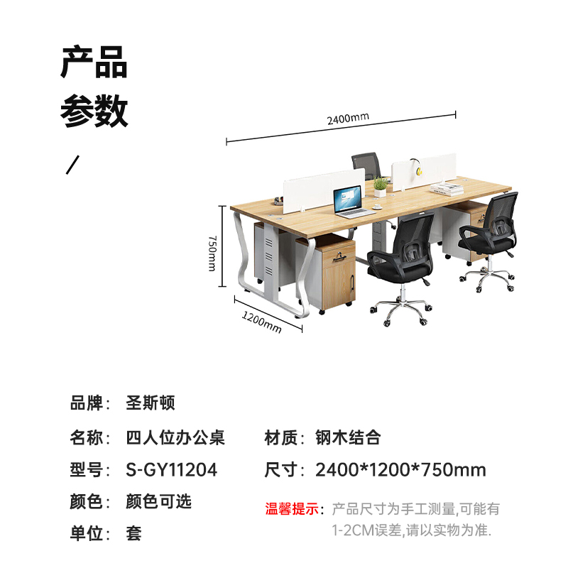圣斯顿S-GY11204四人位职员办公桌电脑桌(含柜椅)2400*1200*750mm 颜色可选(套)