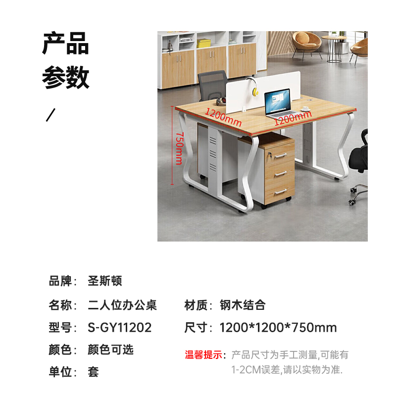 圣斯顿S-GY11202二人位职员办公桌电脑桌(含柜椅)1200*1200*750mm 颜色可选(套)