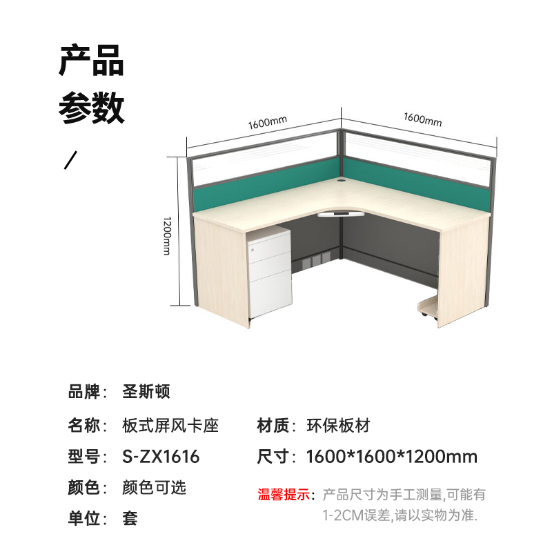圣斯顿S-ZX1616板式屏风卡座办公桌含键盘架主机托不含活动柜1600*1600*1200mm(套)颜色可选