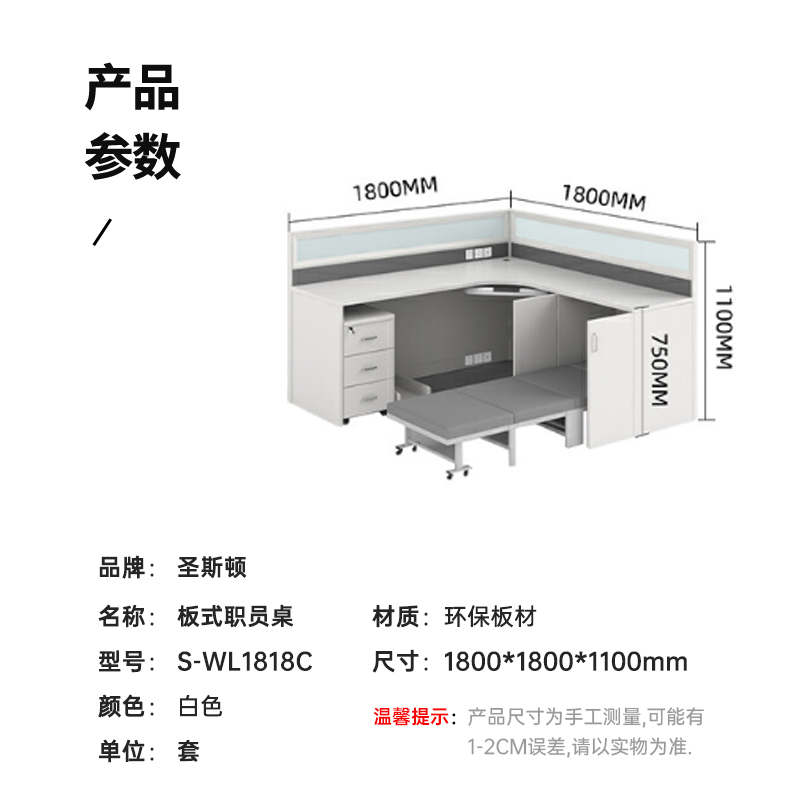 圣斯顿S-WL1818C板式职员桌办公位含折叠床活动柜1800*1800*1100mm(单位:套)白色