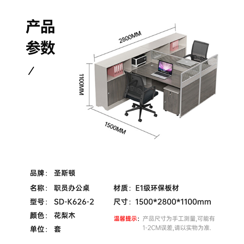 圣斯顿SD-K626-2职员办公桌两人位含活动柜1500*2800*1100mm(单位:套)花梨木