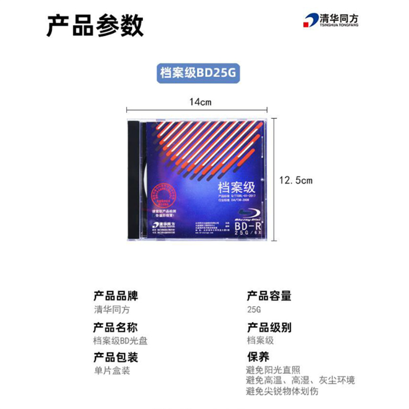 清华同方 BD-R 25G 刻录碟片 办公耗材 档案级蓝光光盘(单位:张)