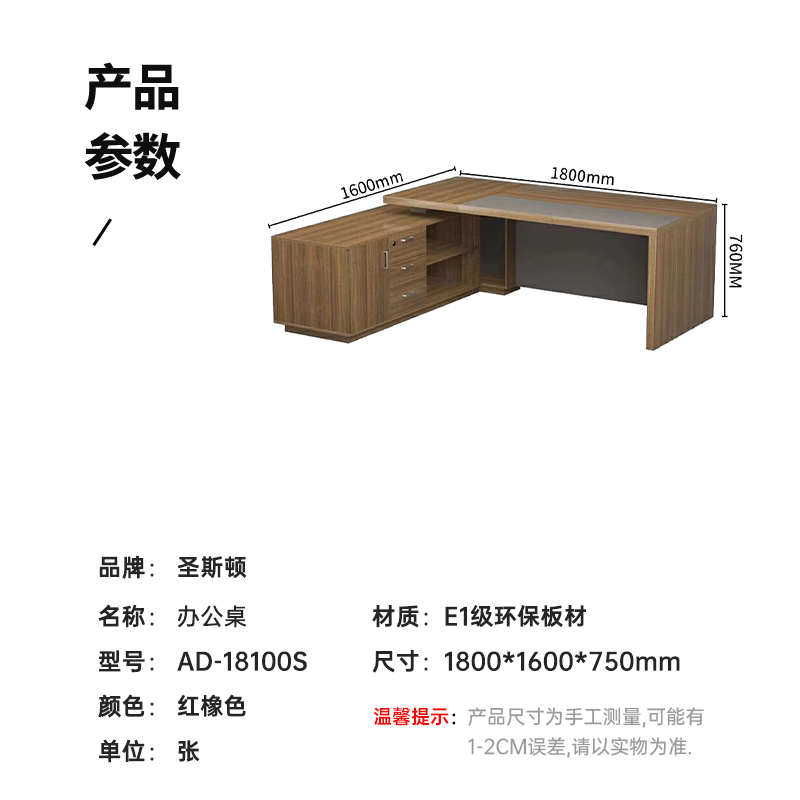 圣斯顿AD-18100S办公桌班台1800*1600*750mm(张)红橡色