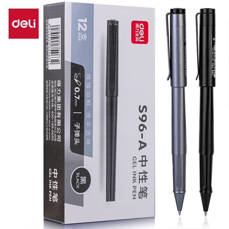 得力S96-A拔帽办公中性笔0.7mm子弹头(黑)(支)
