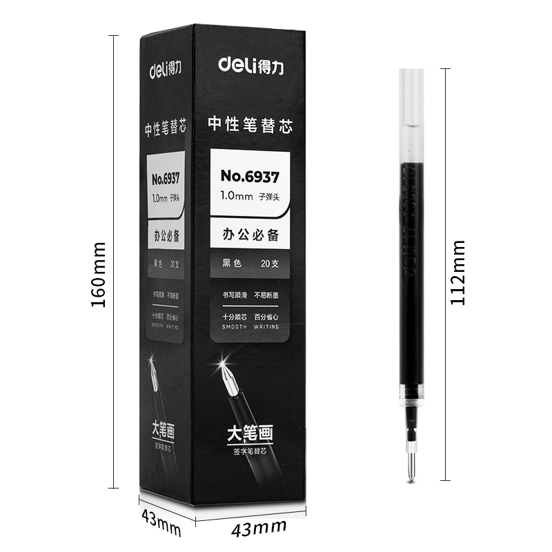 得力(DELI)6937大笔画办公中性笔替芯1.0mm子弹头(黑)(支)