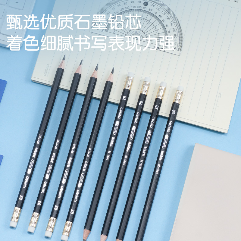 得力S955-2B_黑杆办公皮头2B铅笔(黑)(12支/盒)