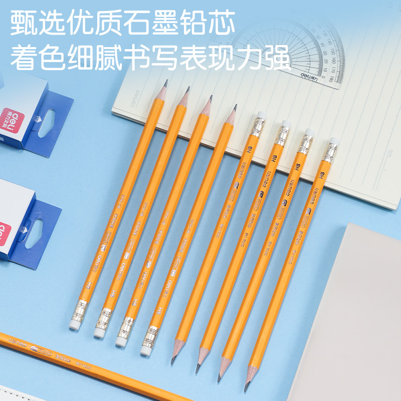 得力(DELI)S956-HB_黄杆办公皮头HB铅笔(黄)(12支/盒)(盒)